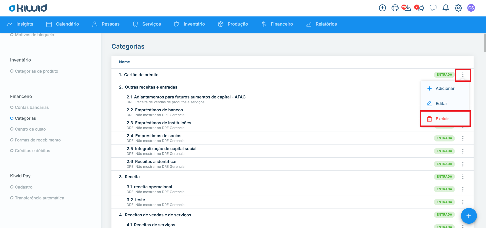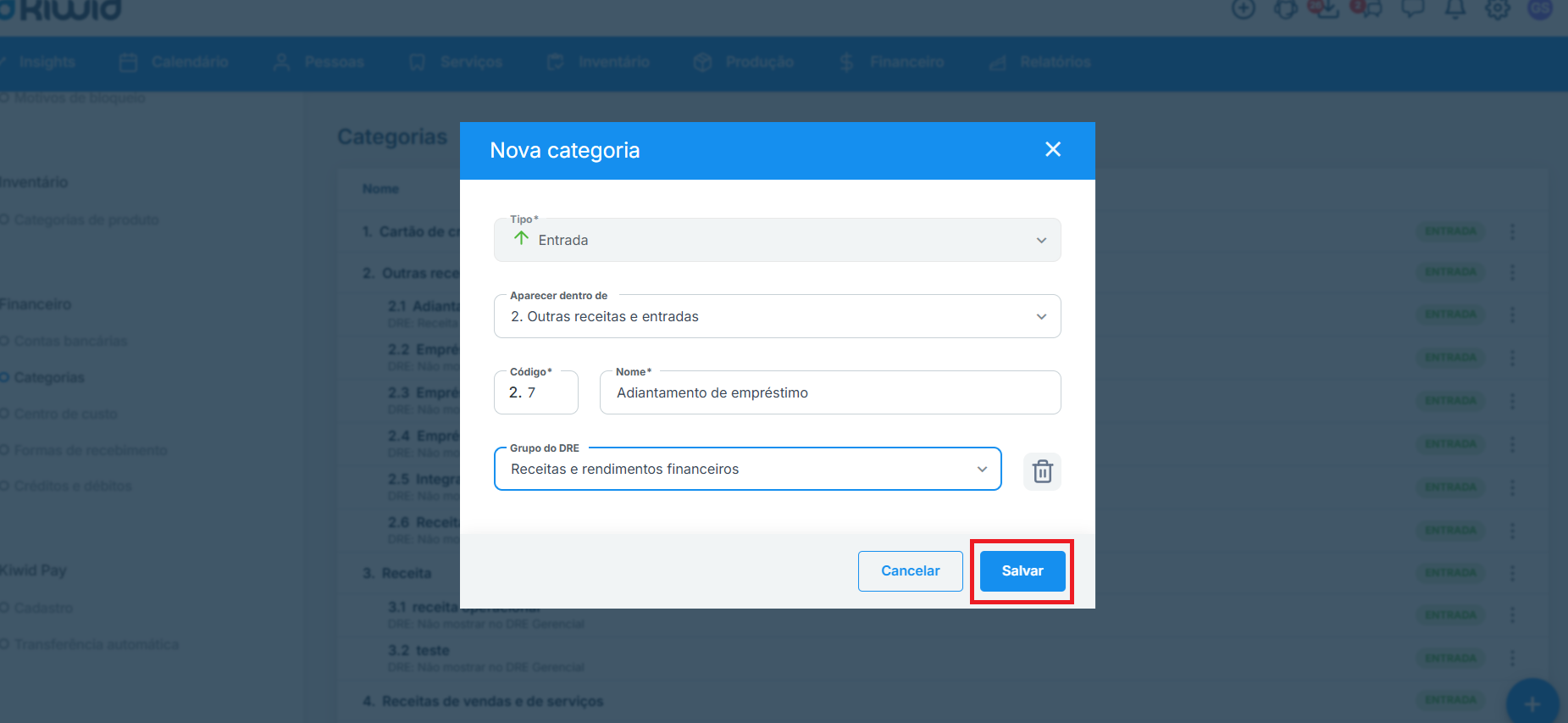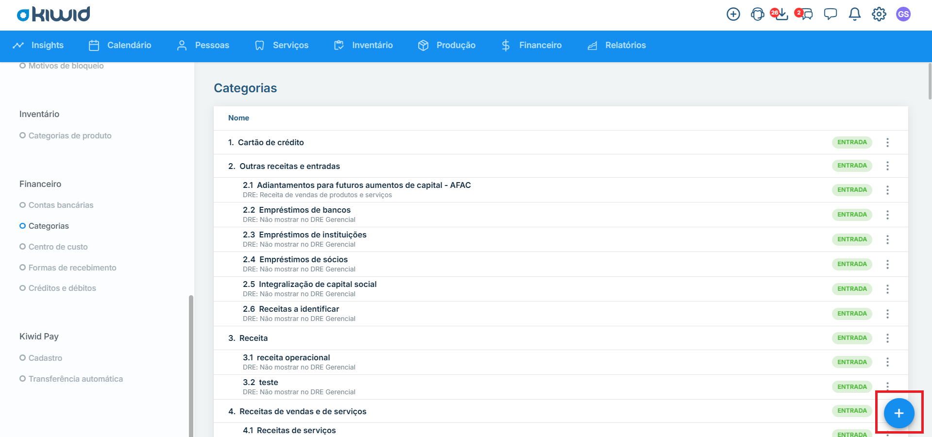 Para adicionar novas categorias financeiras, sejam elas de entrada, saída ou mistas, siga o passo a passo abaixo.